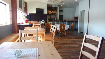 大きな窓の開放的な店内には、ゆったりとしたテーブル席の他に、ソファー席もあり。温かいウッドテーブルやチェアで、窓の景色と音楽が楽しめるご機嫌な空間です。